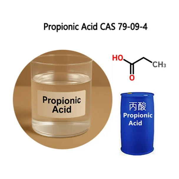 Propionska kislina (CAS 79-09-4) je preprosta organska kislina s kemijsko formulo CH₃CH₂COOH. Pri sobni temperaturi obstaja kot brezbarvna oljnata tekočina. Pojavlja se naravno v nekaterih sirih in fermentiranih živilih ter ima značilen oster vonj. Propionska kislina kot pomembna kemična surovina najde obsežno uporabo v številnih sektorjih, vključno s hrano, farmacevtskimi izdelki in kmetijstvom. Kljub nizki molekulski masi le 74 ima močne protimikrobne in konzervansne lastnosti.
